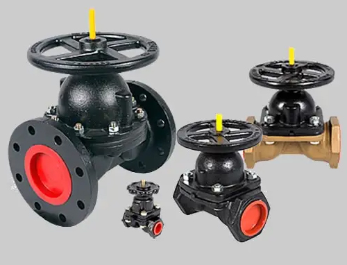Las válvulas de diafragma, utilizan un diafragma flexible para obstruir, controlar, o aislar el flujo de fluidos. El diafragma se mueve hacia arriba o hacia abajo, para aumentar o disminuir el caudal de fluido respectivamente. Los componentes principales de las válvulas de diafragma son el cuerpo de la válvula, el diafragma, el compresor, y el vástago de la válvula.
